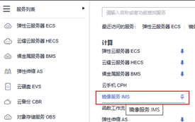 控制台左上角菜单 服务列表 > 计算 > 镜像服务 IMS