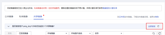 选择 共享镜像 标签 > 全部接受 接受镜像