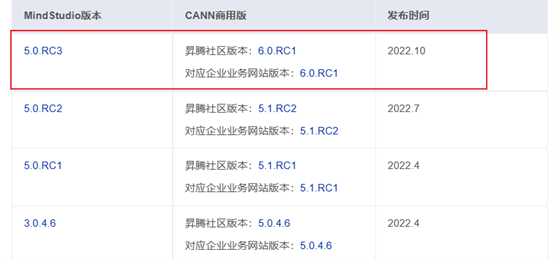 版本配套关系-版本说明-5.0.RC3-MindStudio-文档首页-昇腾社区 (hiascend.com)