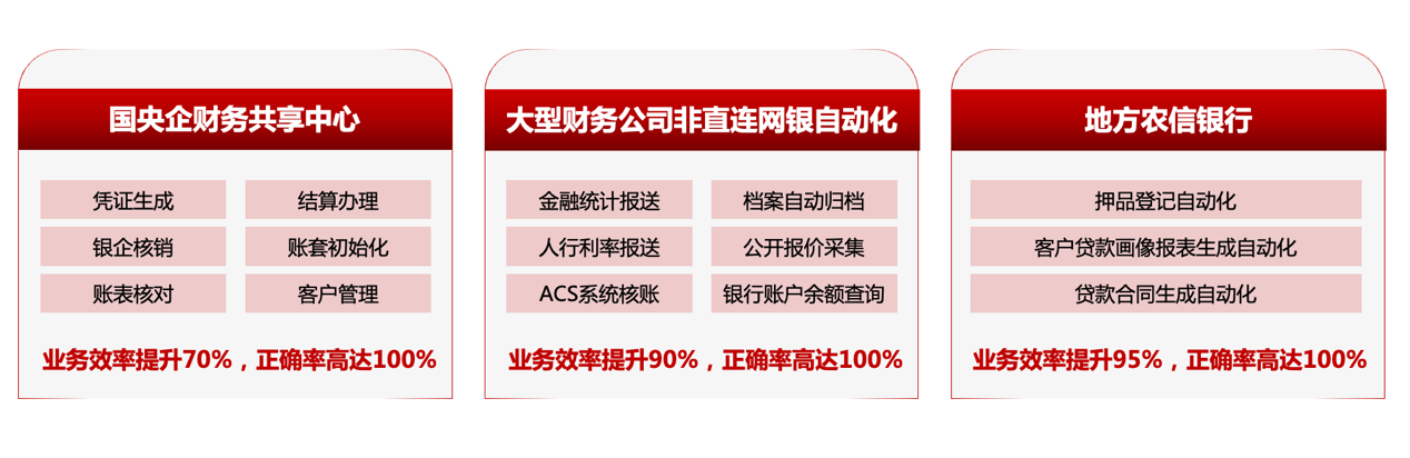 住房按揭贷款押品登记:可实现70%以上的登记流程自动化,并缩短85%的流程周期时间减少人工作业,提升工作效率,缩短业务办理周期;