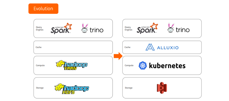 在我们之前的集群管理上,会把Hadoop和Kubernetes的调度分开,基本上所有的spark作业都会运行在Hadoop集群中,其他的一些任务和算法会运行在Kubernetes集群,我们的目标是希望所有的任务全部运行在Kubernetes集群,这样管理起来会更简单。