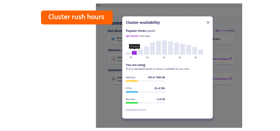 目前我们正在考虑增加集群高峰时段展示的功能,为用户提供更多的集群使用状态和压力等信息,在自助服务平台用户视角来看,用户按照集群的繁忙程度选择自己任务的开始时间,这样可以避免后台复杂的配置就可以获得高性能的运算体验。