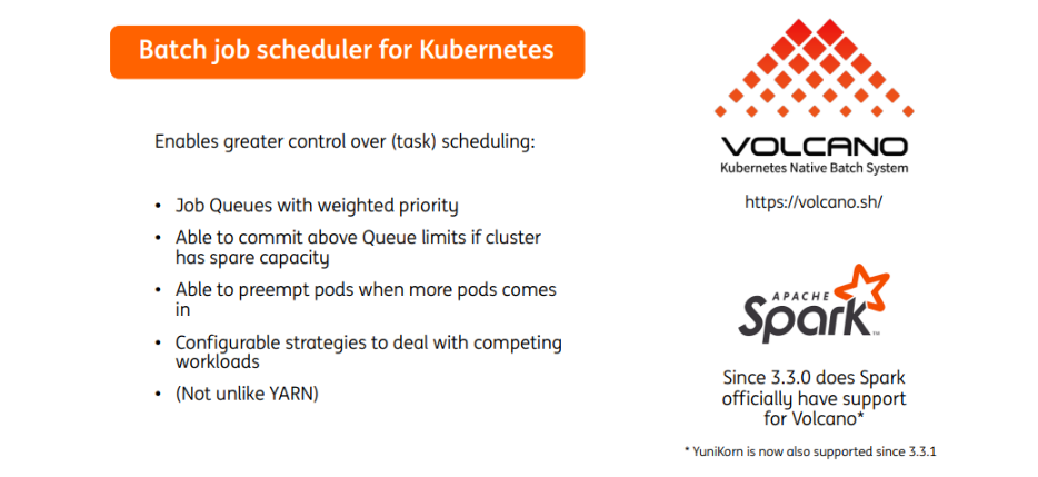 Volcano的引入,补齐了Kubernetes平台对批处理作业的调度管理能力,并且自Apache Spark 3.3版本以来,Volcano被作为Spark on Kubernetes的默认batch调度器,安装使用更方便。
