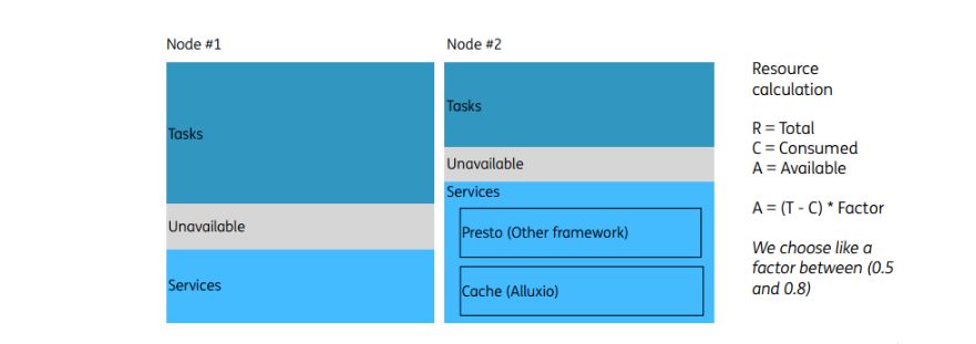 在使用过程中,需要避免批量计算任务与自有服务出现资源抢占与冲突的问题。比如:我们集群中有两个可用节点,集群中需要部署一个统一的服务层对外提供服务,比如Presto,或者类似Alluxio的缓存服务。但是在批量计算调度时,集群的资源空间有可能全部被占用,我们将无法完成自有服务的部署或升级,为此我们增加了空间可用系数相关配置,为集群预留一些备用空间,用于自有服务的部署使用。