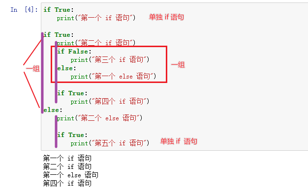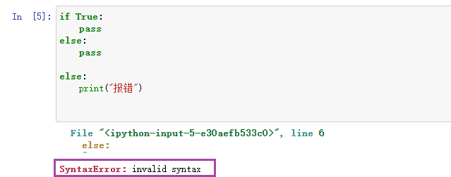 注意上图标记 if else 缩进相同的为一组,并且 if 语句可以单独存在,但 else 语句不可以,直接使用就是语法错误(invalid syntax)。