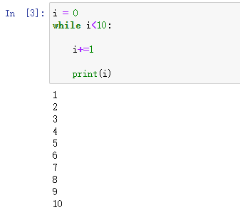 当输出数字 10 之后,代码停止运行,即当 条件表达式 i<10 不成立的时候,代码停止运行,那条件表达式为 False 是如何形成的,就涉及 while 语句的运行规则了,还是文字说明。