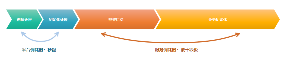 主要包含执行环境创建(如容器启动)、执行环境初始化(如代码包下载、部署)等准备工作,此阶段最多是秒级响应,在冷启动整体耗时中占比很低,通常不到5%,平台侧也支持一些优化方式,将耗时进一步压缩至毫秒级;