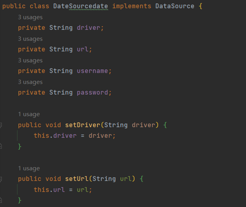 自己写的driver、url、name、password,需提供set方法,set注入