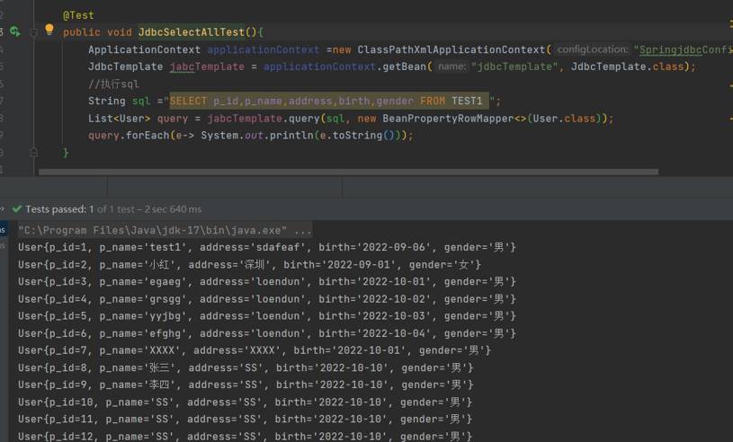 public void JdbcSelectTest(){