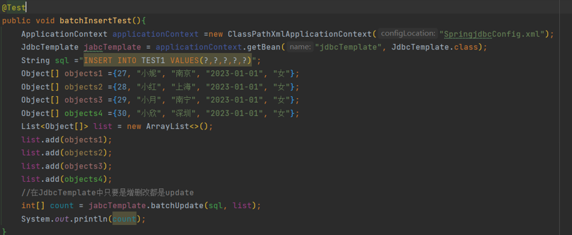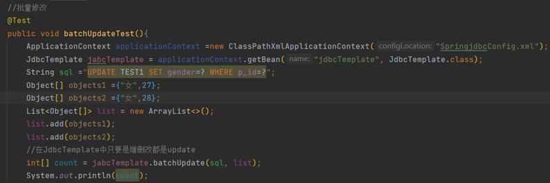 在JdbcTemplate环境准备好的情况下