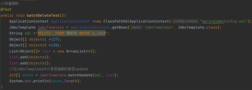 JdbcTemplate批量删除