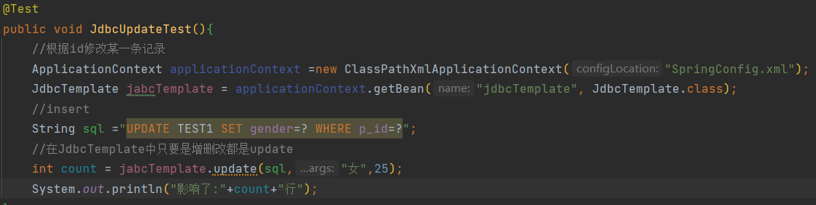 //在JdbcTemplate中只要是增删改都是update