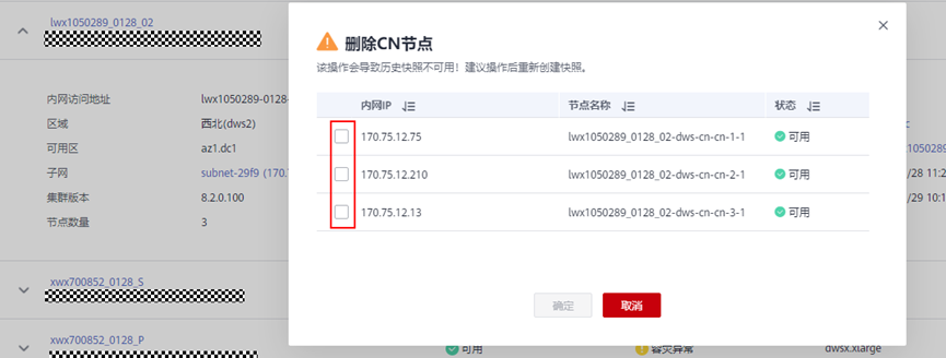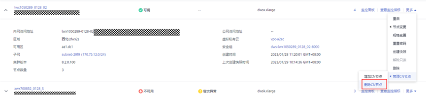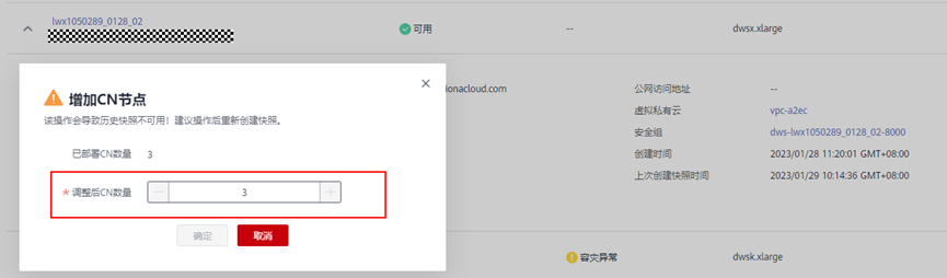 - 增删CN阶段,不支持其他类集群运维操作,例如:升级、扩容、温备修复、快照等
