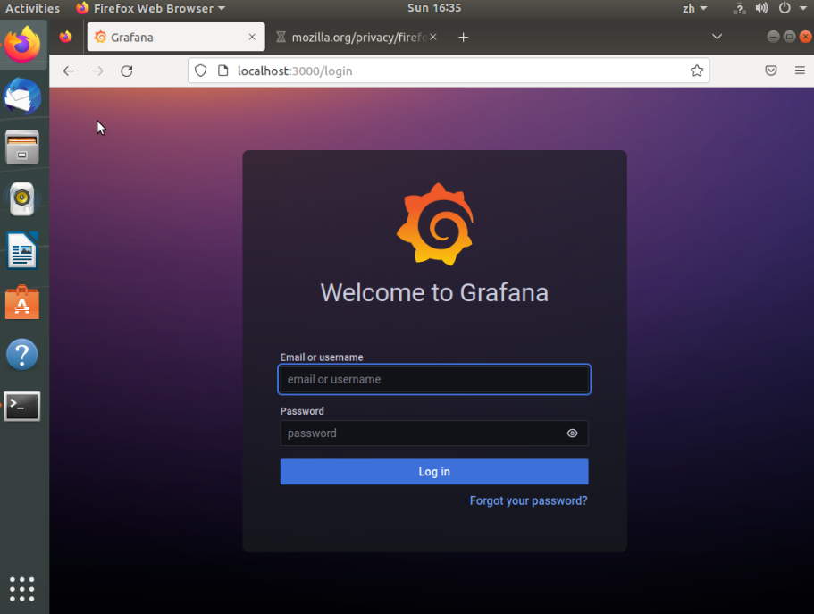 在ECS上打开本地浏览器,输入“http://localhost:3000 ”后回车,出现Grafana登录页面即代表安装成功。