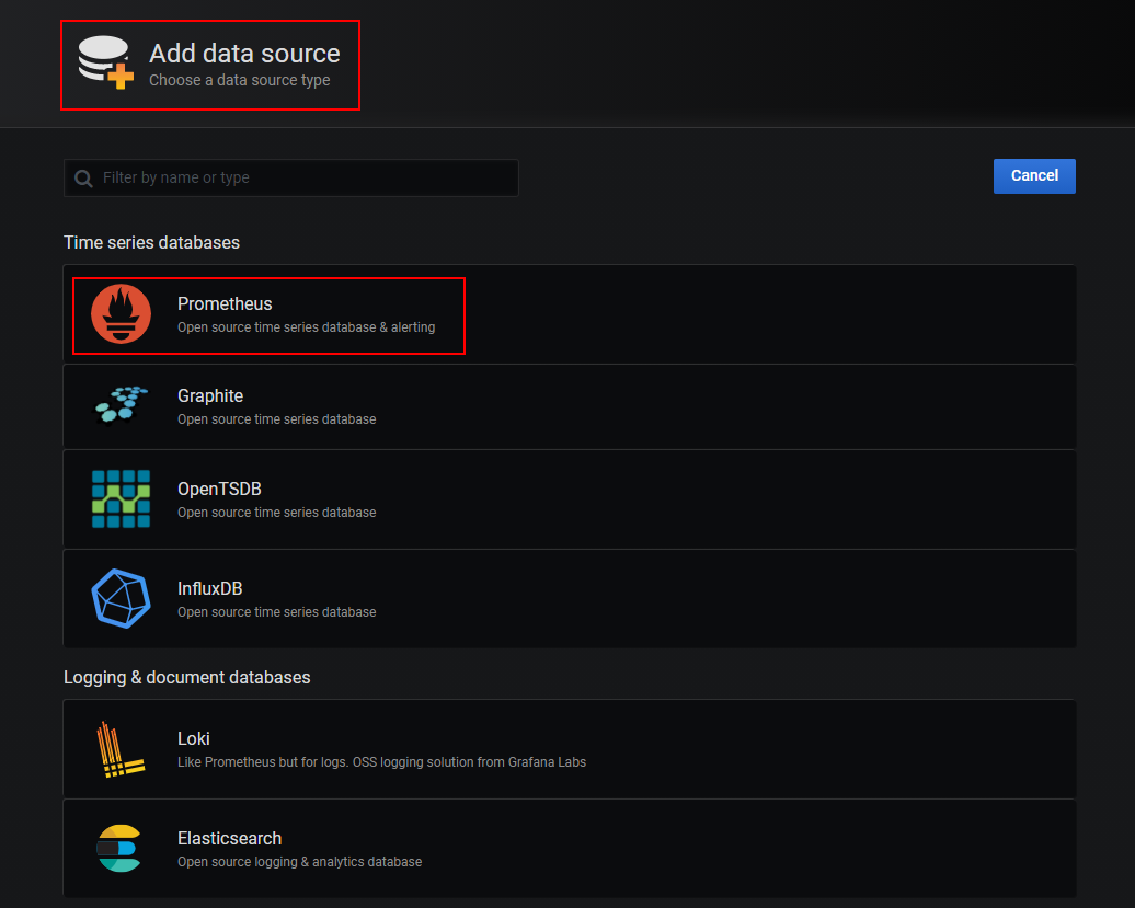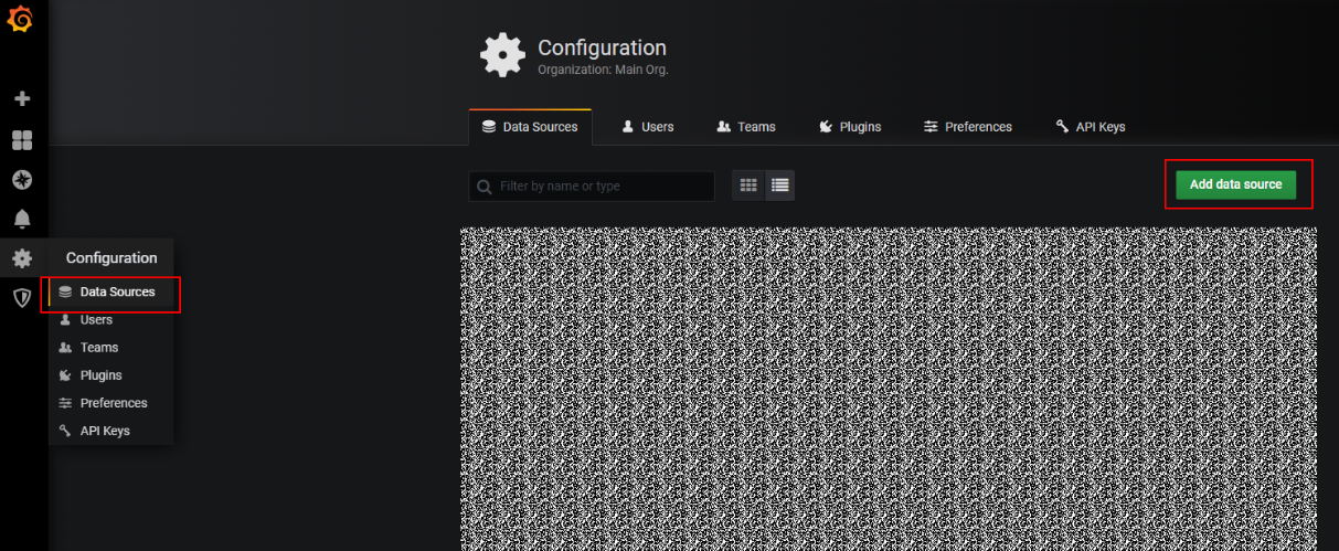 b. 在左侧菜单栏,选择“Configuration > Data Sources”,单击“Add data source”。