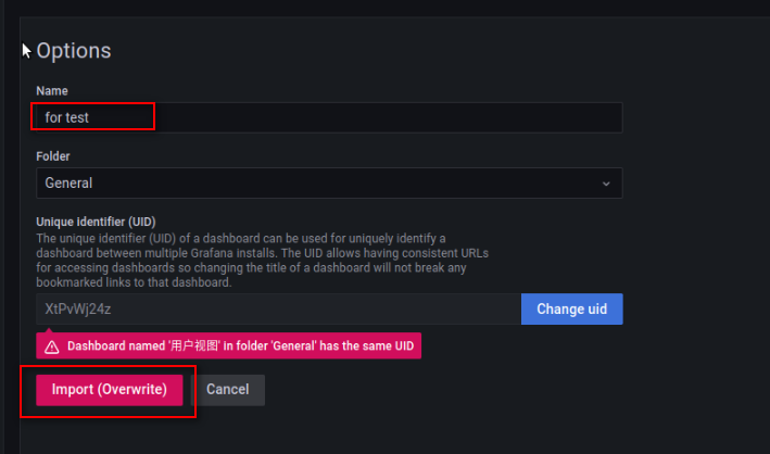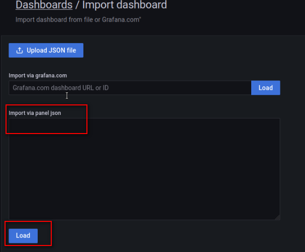 前提:已经获取导出的模板json文件,也可自行配置Dashboards显示内容。