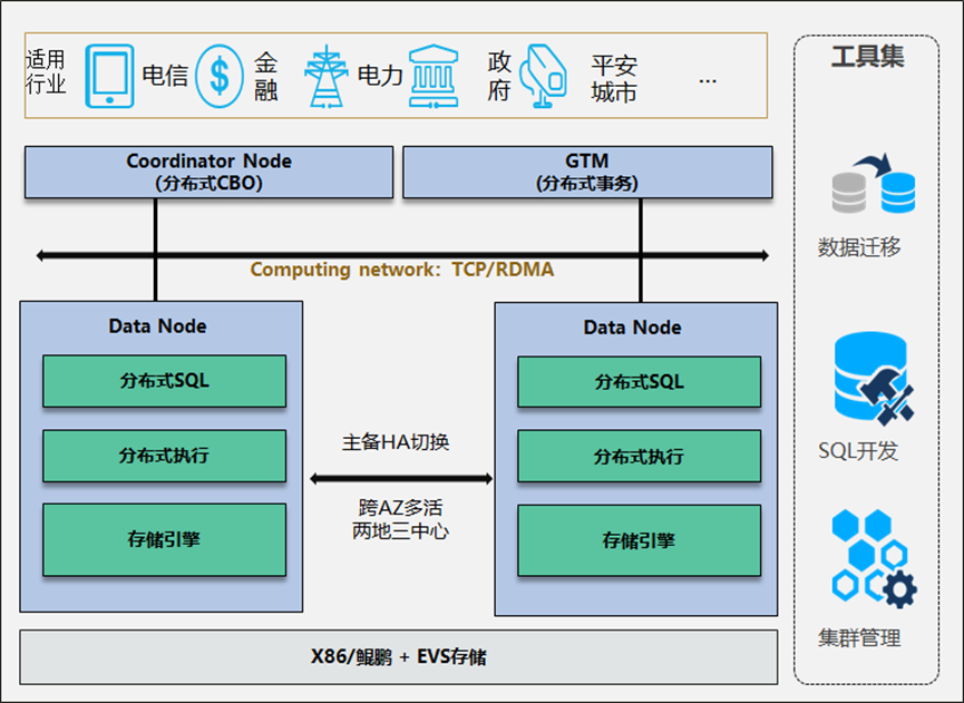 大并发、大数据量、以联机事务处理为主的交易型应用,如政务、金融、电商、O2O、电信CRM/计费等,服务能力支持高扩展、弹性扩缩,应用可按需选择不同的部署规模。