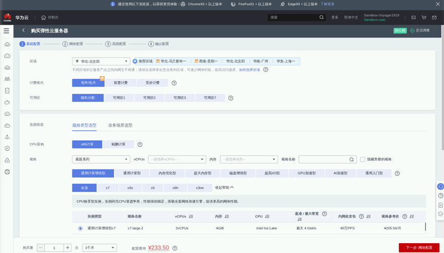 ③ 可用区:可用区1。(如资源售罄,可更换可用区)