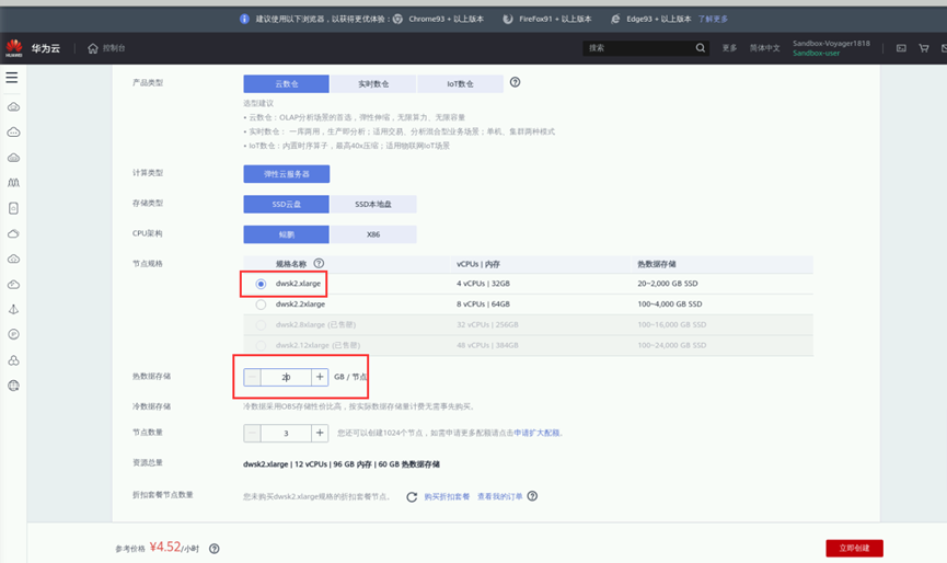 点击右上角“创建数据仓库集群”,并按下图配置以下参数。