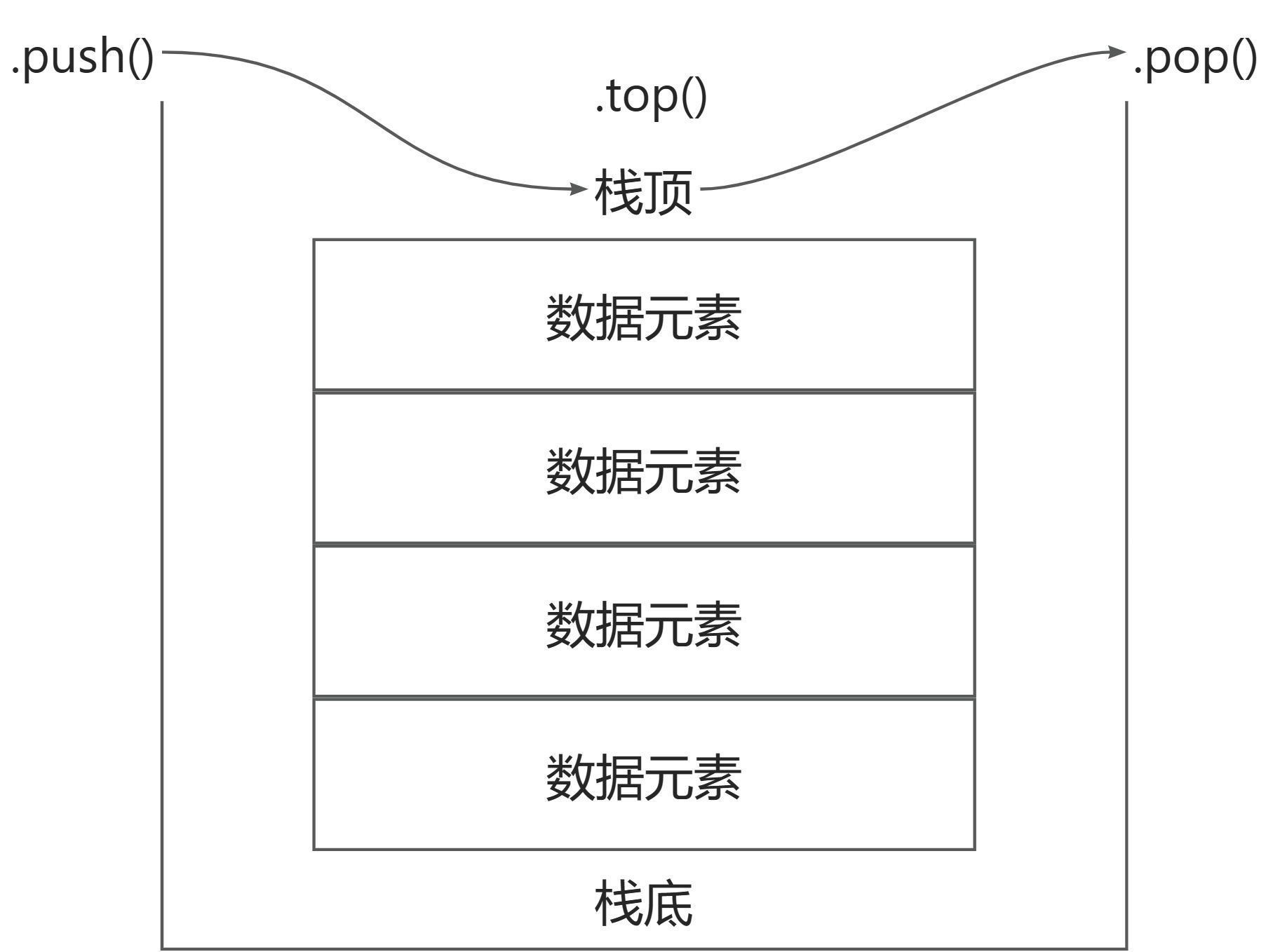 .push(elem);//向栈顶添加元素.pop();//从栈顶移除第一个元素.top();//返回栈顶元素