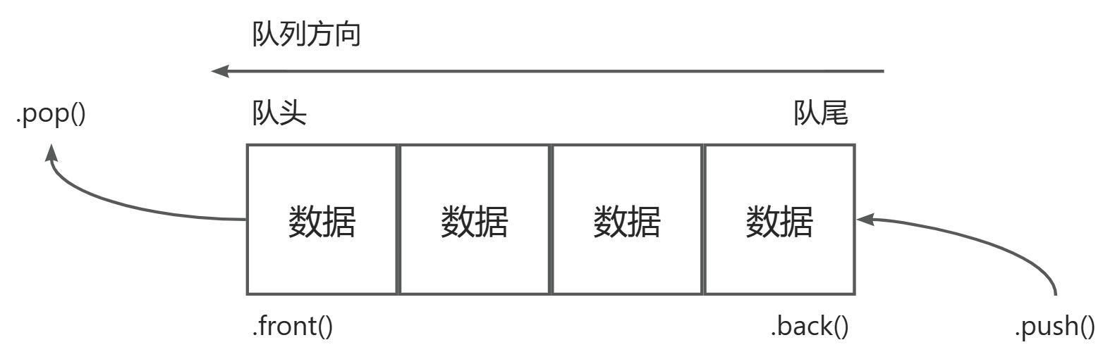 .push(elem);//往队尾添加元素.pop();//移除队头元素.back();//返回最有一个元素.front();//返回第一个元素