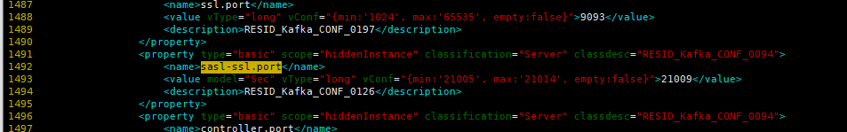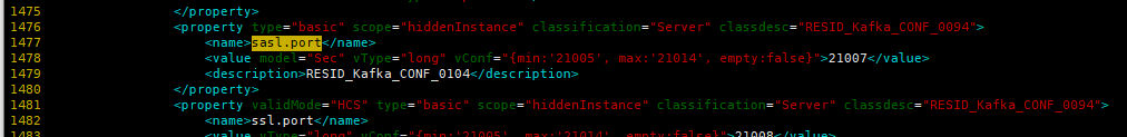 3. 搜索sasl-ssl.port,删除model="Sec"