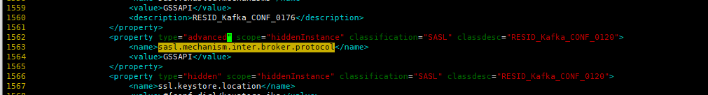6. 搜索sasl.mechanism.inter.broker.protocol,将type="hidden"修改为type="advanced"