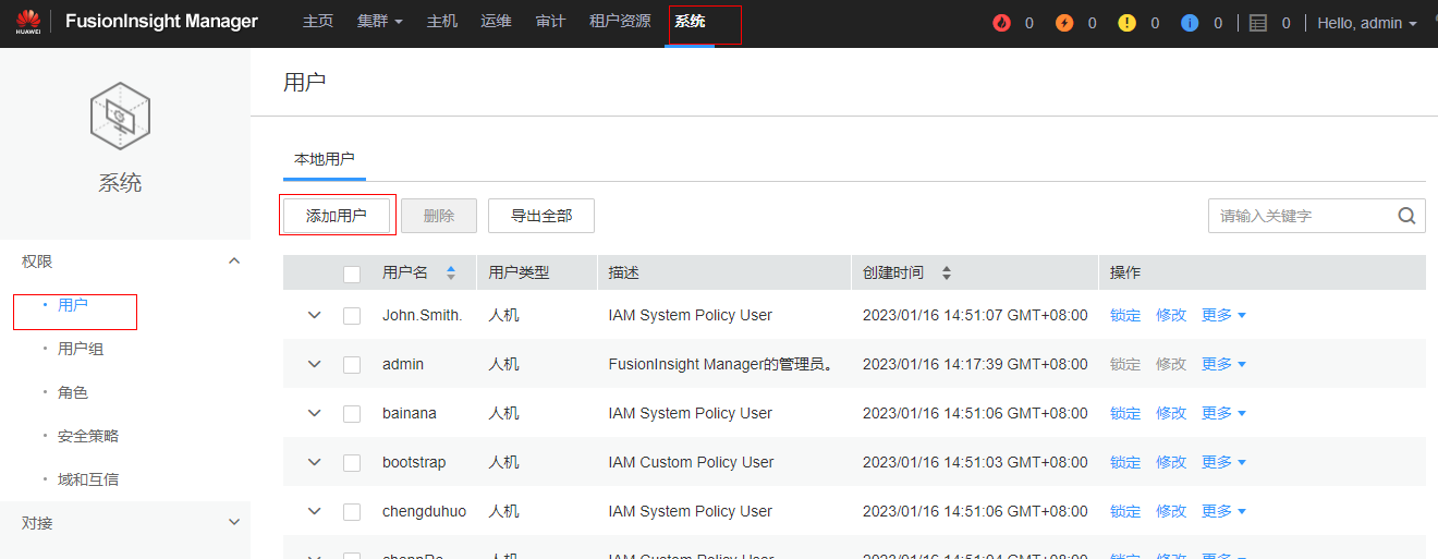 前往manager界面创建用户,如客户界面已经创建用户,则略过此步: