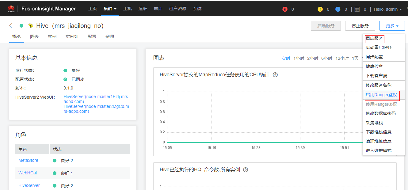 普通集群各组件默认没有开启Ranger权限控制,因此首先需要开启组件的Ranger鉴权。