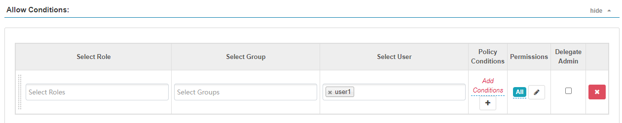此处策略可以配置具体的用户,为了方便配置成“{USER}”: