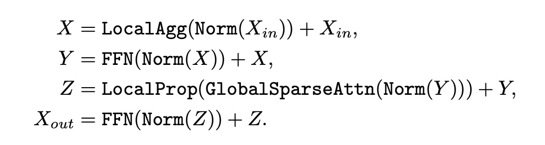 - Global sparse attention:建模一组代表性Token之间的长期关系,其中每个Token都被视为一个局部窗口的代表;