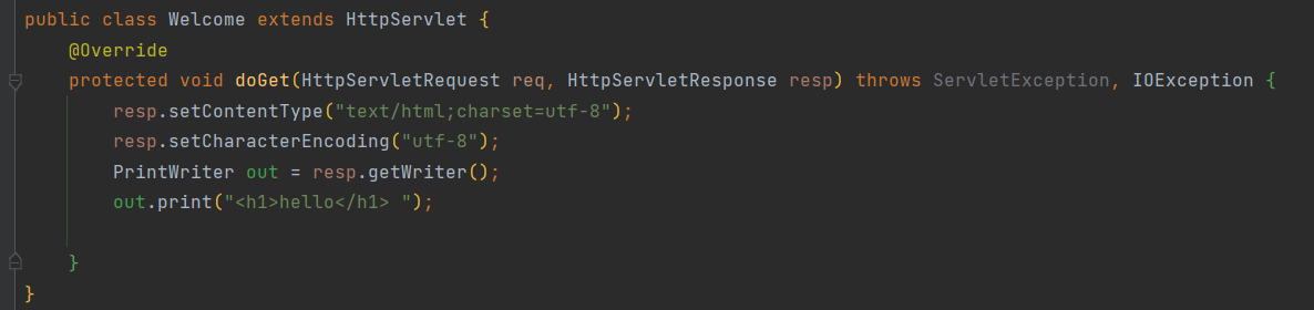 out.print("<h1>hello</h1> ");