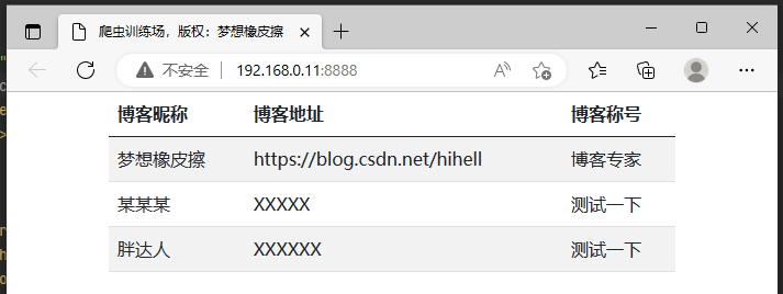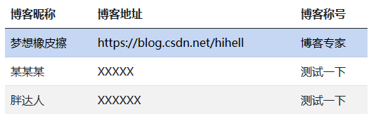 在 Bootstrap 中,内置了非常多的表格样式,实践中首先准备一个测试用表格,代码如下。