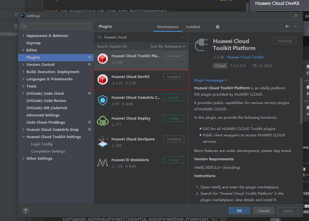 • 安装Huawei Cloud DevKit(更名后叫Huawei Cloud API)