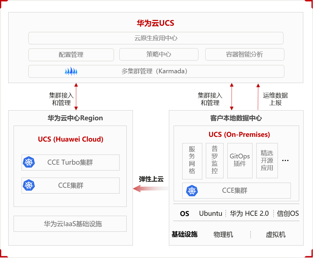 如上图1所示,华为云UCS (On-Premises) 具备以下核心优势:
