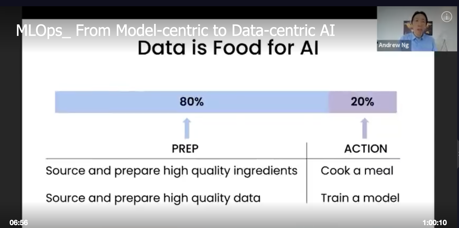 Andrew Ng 在其《MLOps: From Model-centric to Data-centric AI》https://v.qq.com/x/page/j3236lmb9su.html 的演讲中指出,在深度模型的训练过程中,有时优化训练数据比优化模型要更有效。数据就像整个AI系统的食材,在整个AI应用的开发过程中,用于准备、标注、清洗数据的时间甚至能占到80%,以至于不少AI工程师戏称自己为“数据清洗工”。