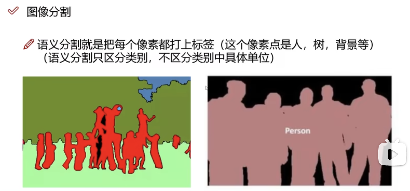 由上图可知,实例分割在和语义分割很相似,只是在”标签“上出现了层级结构,而在上面我们构建的系统中,”标签(Label)“是单层的。