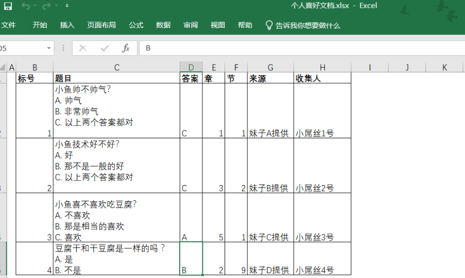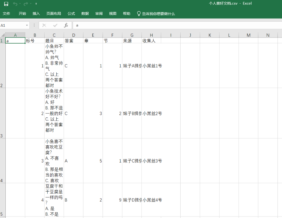 in2csv 个人喜好文档.xlsx > 个人喜好文档.csv