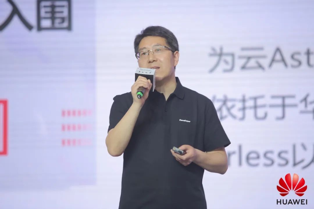 华为云开发者联盟产品部和云应用商店部部长王希海在会上发表演讲。