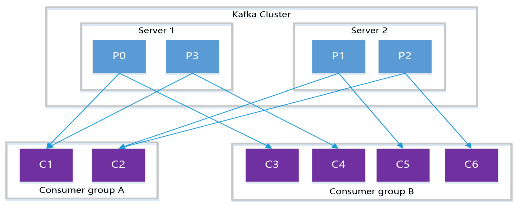 消费者组内消费者直接连接Topic Partition的Leader所在Broker,主动拉取数据。同一消费者组内消费者可并发消费不同Partition的消息,可扩展消费者组内消费者数量增加消费速率。