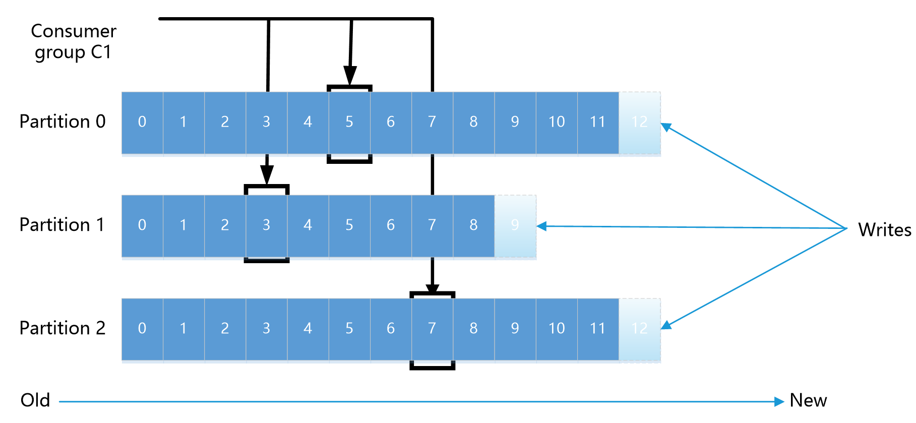 - Offset:偏移量,消费者组通过Topic、Partition及Offset,记录消费消息的位置。