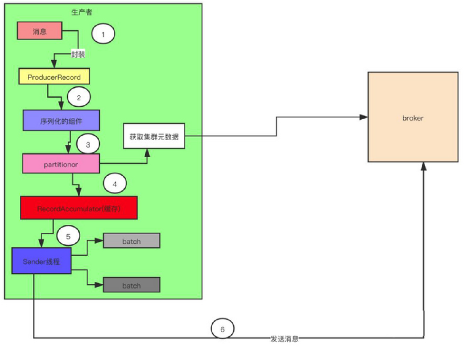 Producer连接任意存活的Broker,获取Topic、Partition的Leader元数据信息,然后直接与Leader所在Broker连接,发布消息。Producer还可以制定分区函数,根据Key将消息发往特定的Partition。