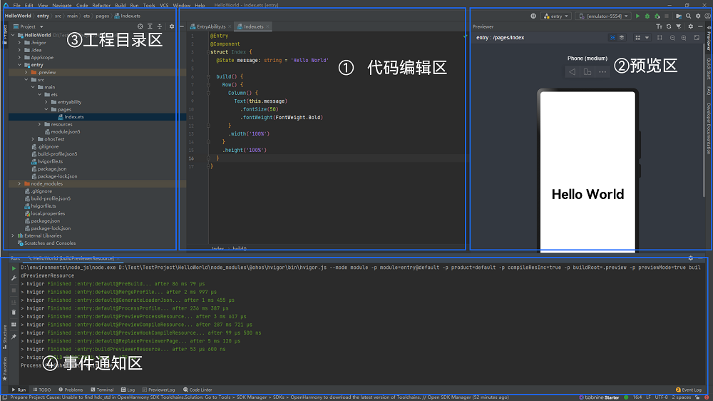 准备工作完成后,接下来将进入DevEco Studio进行工程创建和运行。