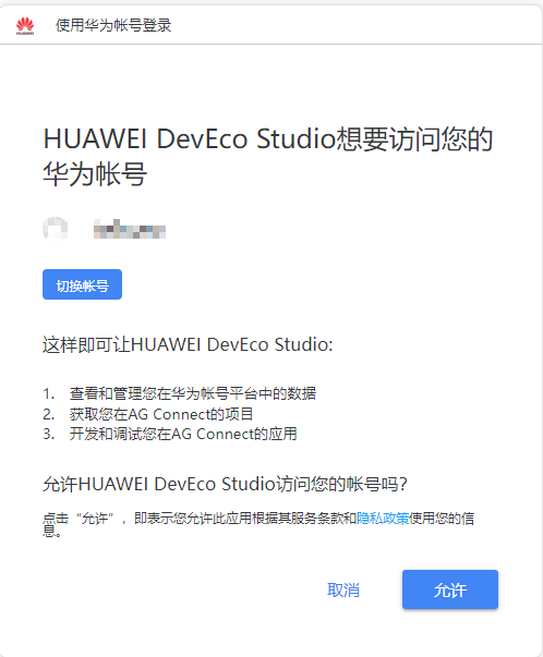 2. 选择Remote Emulator窗口,单击“Sign in”,登录华为帐号,并允许DevEco Studio访问华为帐号(未完成实名注册请前往开发者网站(华为开发者联盟官方网站 )完成实名注册)。