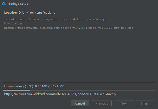 单击“Next”,系统会开始下载Node.js,等待下载完成即可。