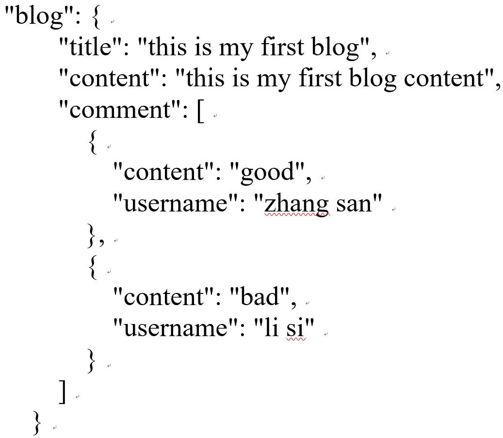 该条数据中content以及username的实际存储方式如下,失去了content与name的关联。这时如果关联搜索"good"和"li si",同样能返回搜索结果。