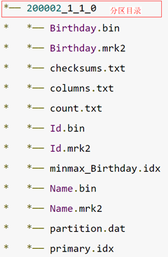 一张表完整的物理结构包括表目录、分区目录及数据文件组成。数据文件如下:
