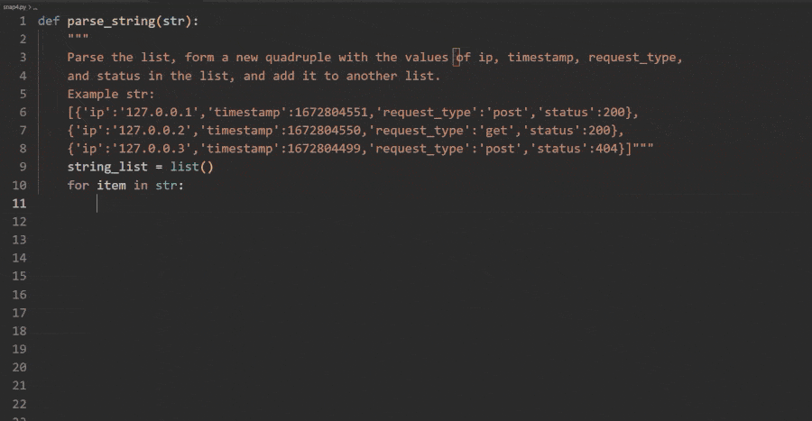 CodeArts Snap在已有函数上文的场景下,还可以通过理解上文的语义和逻辑,自动进行行级代码生成(如下图)。