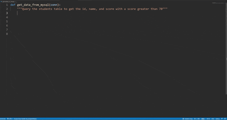 可以通过自然语言识别做到函数级的多行代码生成,开发者仅需在定义好的函数签名末尾处敲下“回车键”,CodeArts Snap将生成符合业务逻辑的完整函数代码(如下图)。