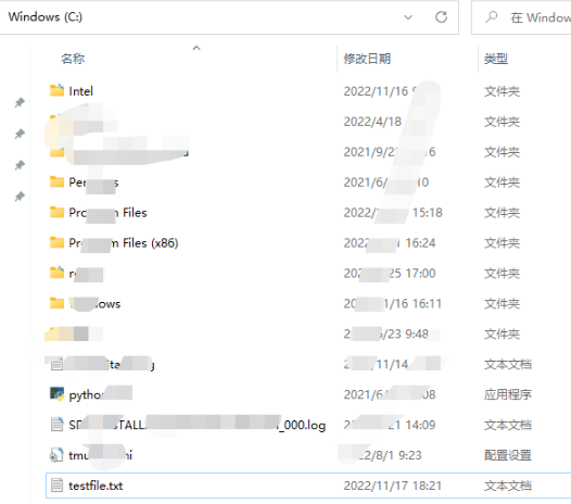 在C盘生成testfile.txt 文件